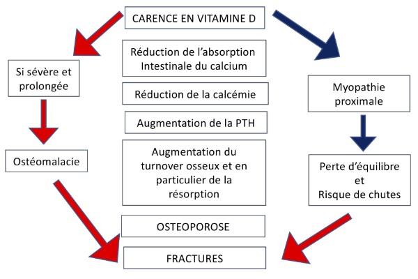 La vitamine D est utilisée dans le traitement de l’ostéoporose, dans l’ostéomalacie et dans le rachitisme (Voir figure 2).